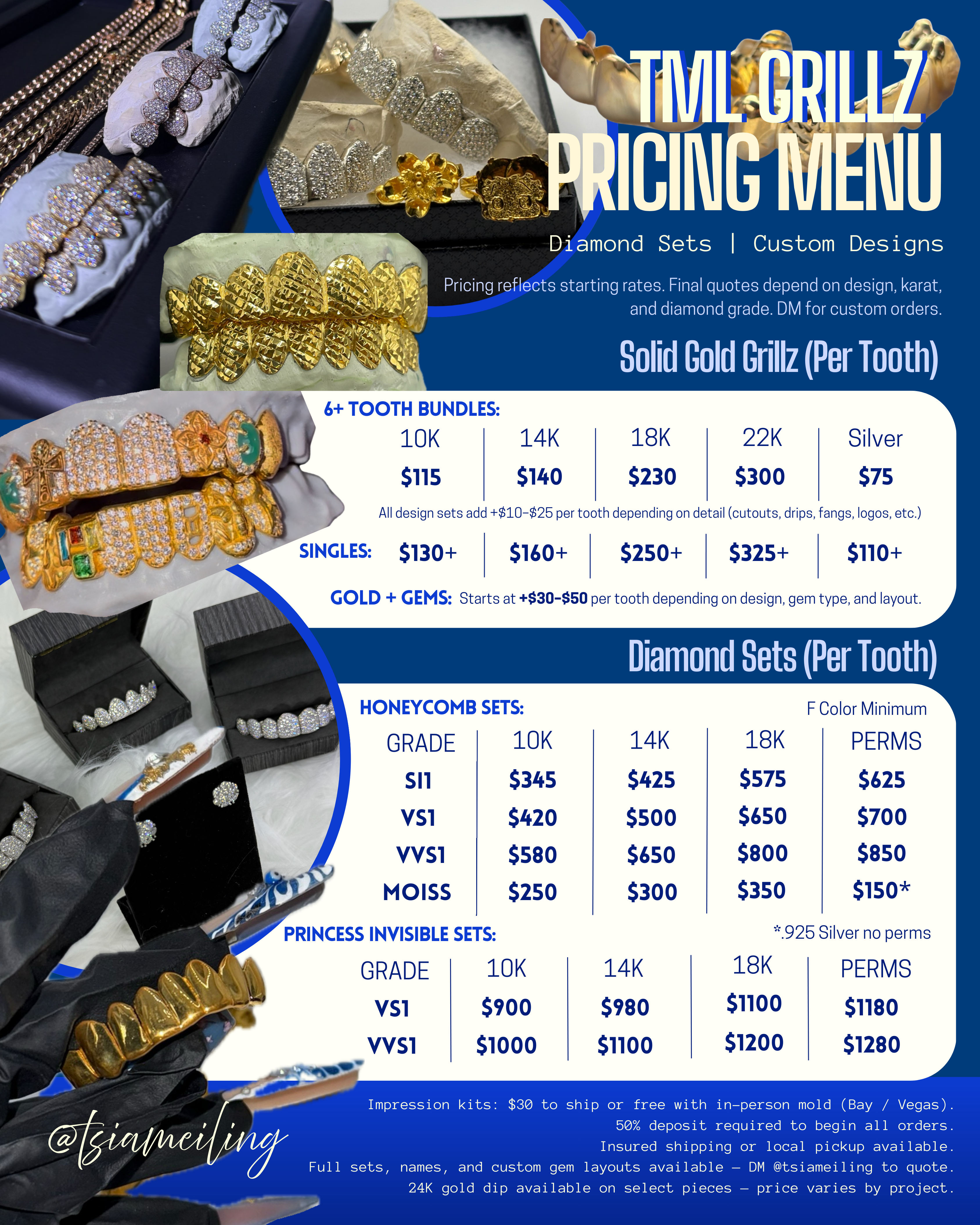 Final quotes depend on total teeth, diamond layout, and mold approval.